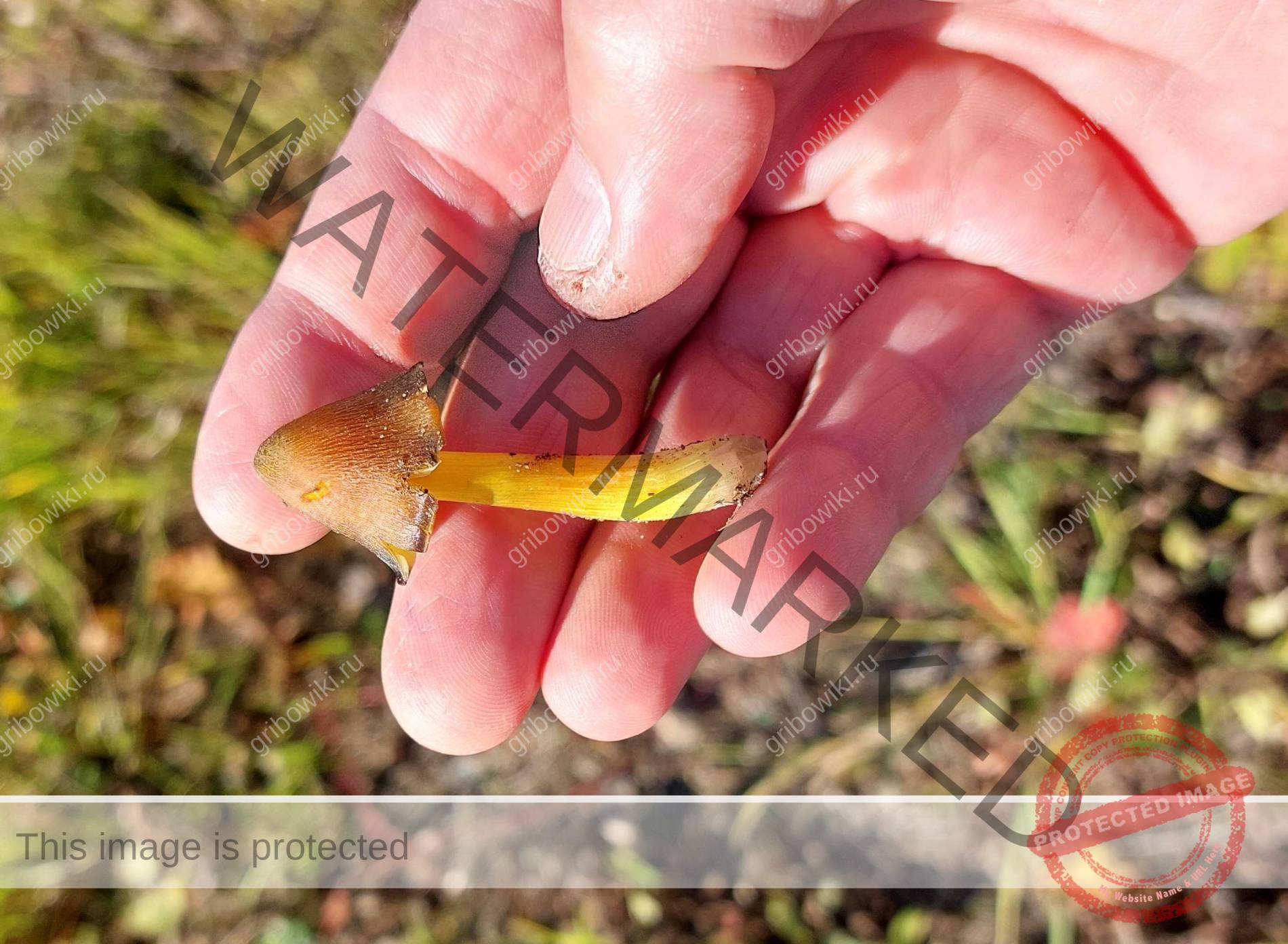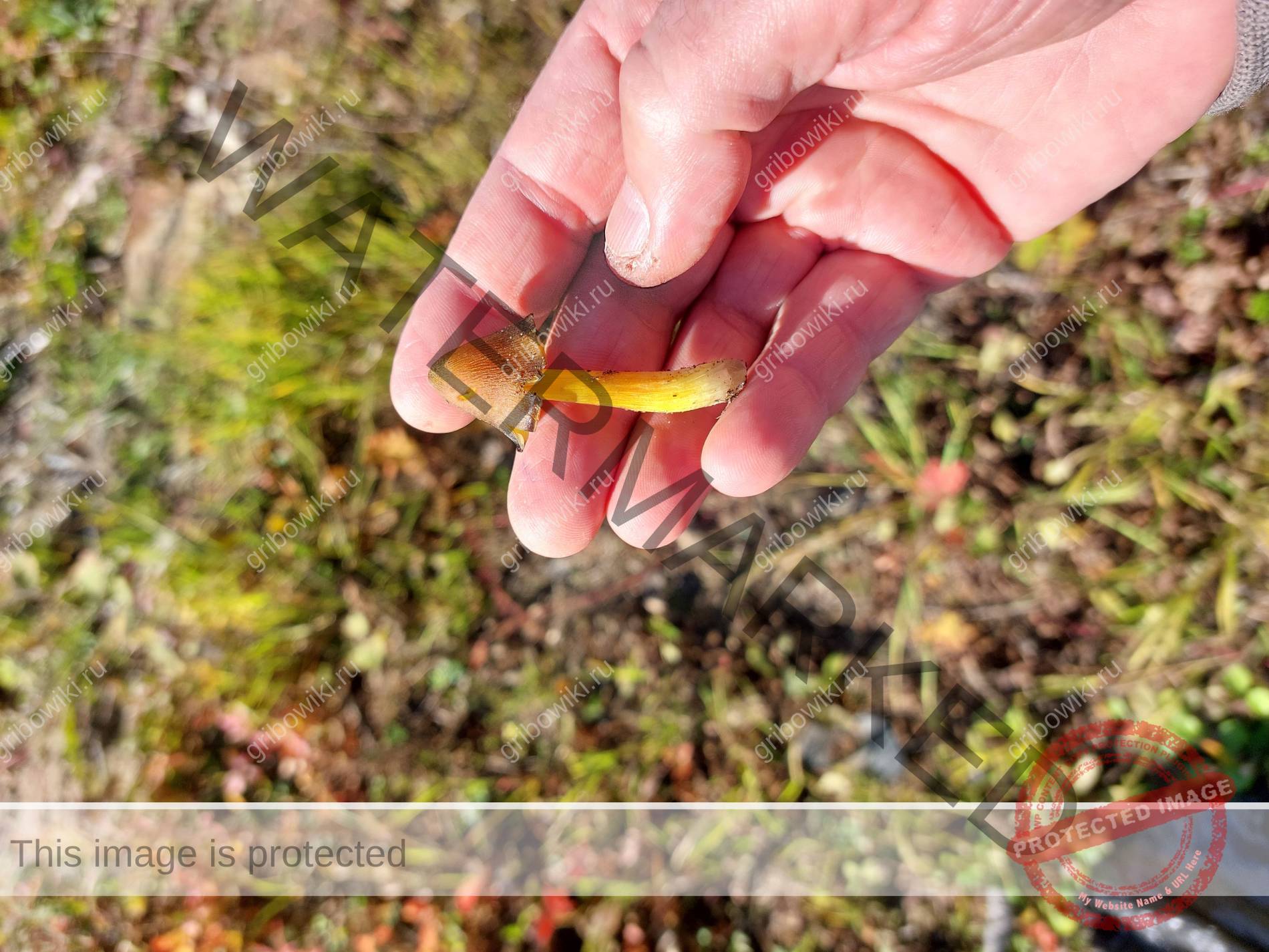 Сергей просит распознать грибСургутСергейСмешаный лес, на просеке. Ножка и пластинки желтые, серая шляпка.